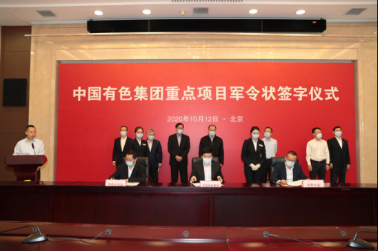 10月12日,中国有色集团在京举行重点项目军令状签字仪式,以签约军令状的形式进一步压实责任,全力打造世界一流矿业企业。