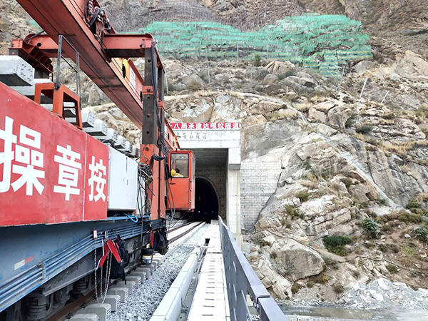 10月19日下午,随着铺轨机吊装着第一排25米轨排缓缓铺设到隧道入口,标志着中国铁建所属中铁十八局集团承建的川藏铁路拉萨至林芝段重点控制性工程——达嘎拉隧道开始铺轨施工。