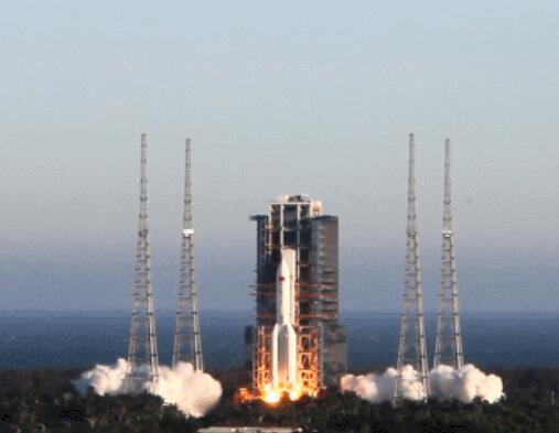 2020年5月5日18时,为我国载人空间站工程研制的长征五号B运载火箭,搭载新一代载人飞船试验船,在我国文昌航天发射场点火升空,首飞任务取得圆满成功,为我国空间站在轨建造任务奠定了重要基础。