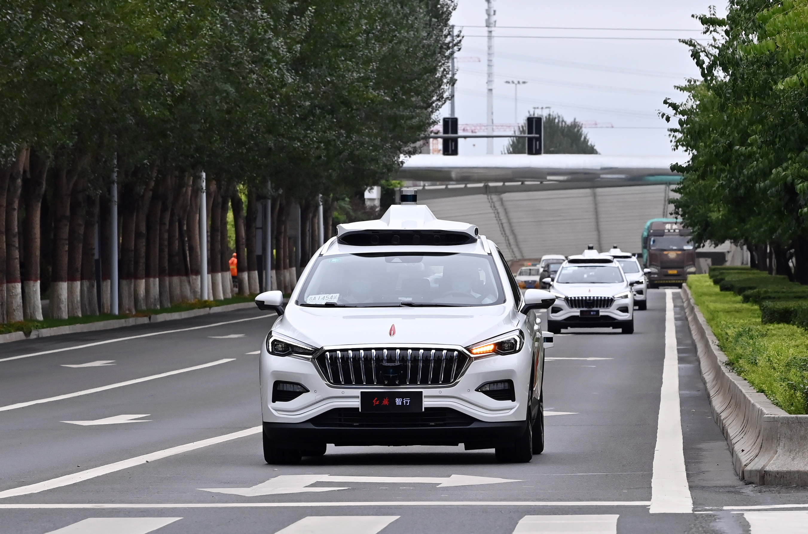 8月29日,“旗智春城”智能网联示范区启动仪式在中国一汽举行。图为自动驾驶汽车在示范区内运行。