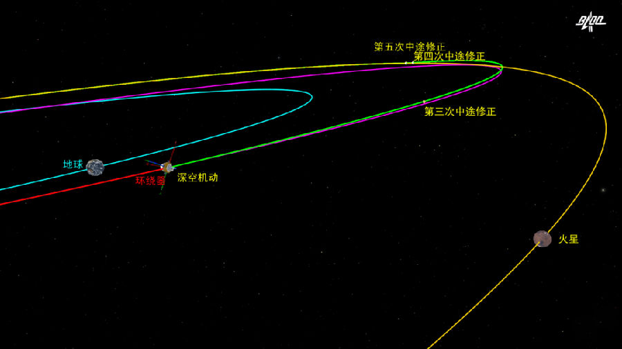 10月28日22时,在我国首次火星探测任务飞行控制团队控制下,由中国航天科技集团有限公司研制的我国首次火星探测任务“天问一号”探测器8台25N发动机同时点火工作,顺利完成第三次轨道中途修正,并在轨标定了25N发动机的实际性能。