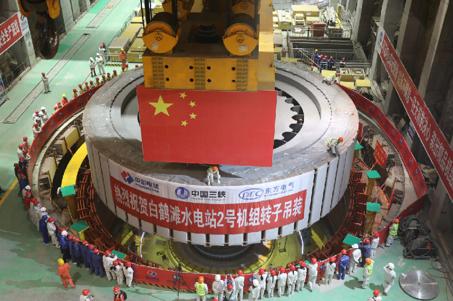 10月26日,由中国电建所属水电四局安装的白鹤滩水电站左岸2号机组转子提前合同工期83天成功吊装,标志2号机组全面进入总装攻坚阶段,向明年首批机组发电目标又迈出坚实一步。