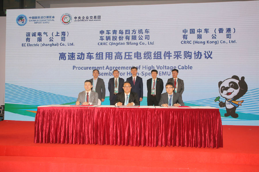 11月7日,中国中车旗下13家子企业与来自美国、德国、瑞典、捷克、日本等9个国家的26家海外供应商及其代理公司,在第三届进博会上签订31项技术装备采购协议。