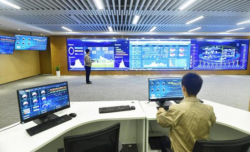 国网天津电力员工在智慧能源运营中心分析综合能源服务业务情况