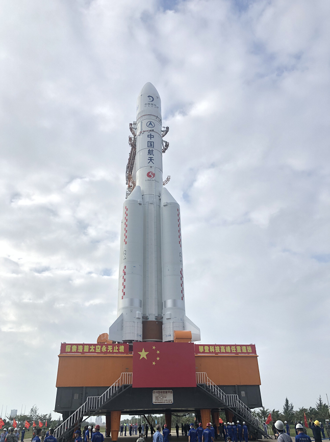 11月17日,长征五号遥五运载火箭和嫦娥五号探测器在中国文昌航天发射场完成技术区总装测试工作后,垂直转运至发射区,计划于11月下旬择机实施发射。