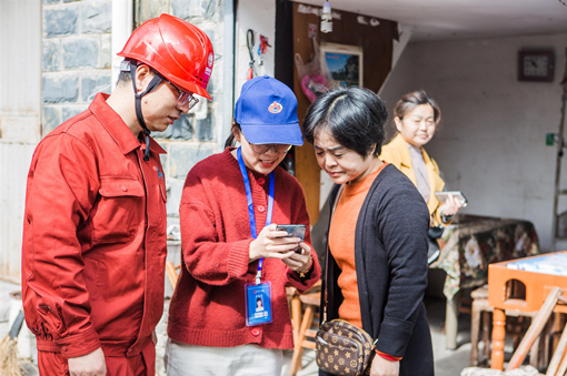 国家电网供电营业人员为客户介绍“网上国网”App。
