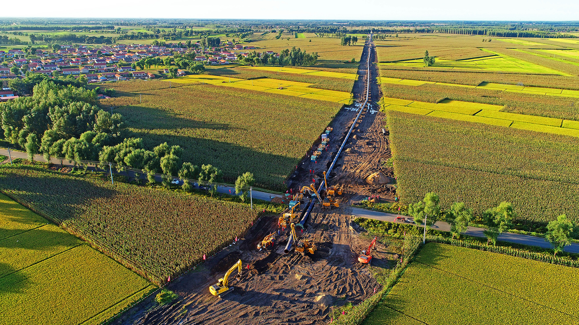 中俄东线天然气管道在我国境内途经9个省区市,境内段新建管道3371公里,利用已建管道1740公里,按照北、中、南三段分期建设。其中,北段(黑龙江黑河-吉林长岭)已于2019年12月投产通气;南段(河北永清-上海)于今年7月启动建设。此次中俄东线天然气管道中段的建成投产,将有利于改善环渤海地区空气质量,拉动沿线地区经济发展,完善区域能源结构;同时与已建的东北、华北管网、陕京管道系统及大连、唐山LNG、辽河储气库等互联互通,有效增强京津冀地区天然气供应能力和调峰应急保障能力,提升供气能力2700万立方米/日,助力今冬明春北方地区清洁取暖。