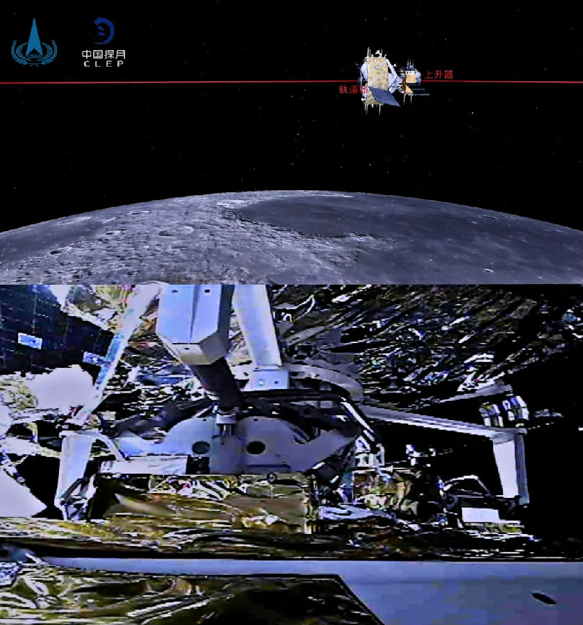 后续,嫦娥五号轨道器和返回器组合体将与上升器分离,择机返回地球。