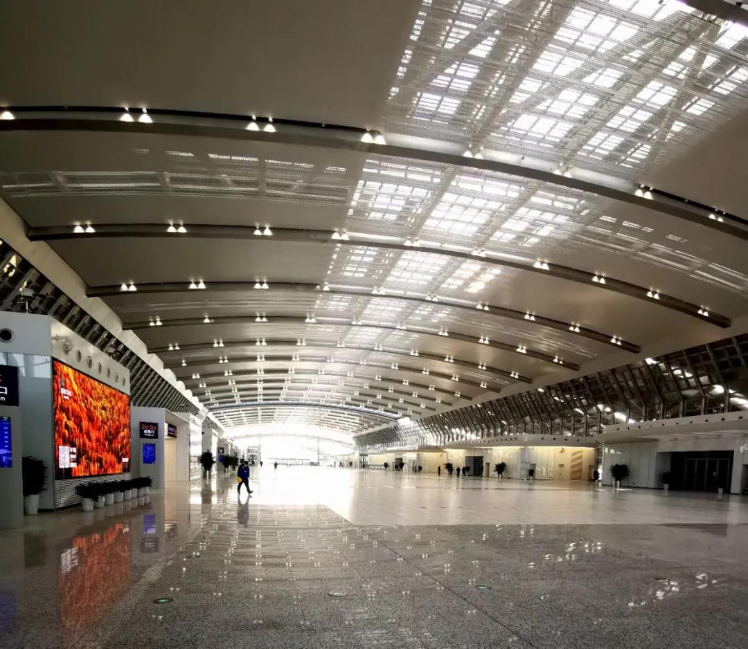 便捷高效的综合枢纽。针对站台标高位于地面以上16.4m的设计条件,本着集约建设、方便旅客的设计原则,项目部采取站桥一体的线下候车厅和高架候车厅相结合的双层立体候车形式面对不同旅客群;结合出站夹层和南北侧车场在站房中央设置联系通廊,实现南北联通;结合十字立体交织的地铁和轻轨线路,设置横纵立体的双向换乘通廊。