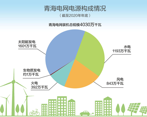 2020年12月30日,世界首个新能源远距离输送大通道青海—河南±800千伏特高压直流工程全面建成投运,为青海能源支柱产业、绿色产业发展和脱贫攻坚提供了有力支撑。2020年,青海电网新增并网新能源场站87座,装机容量达861万千瓦;青海两个千万千瓦级可再生能源基地全面建成。