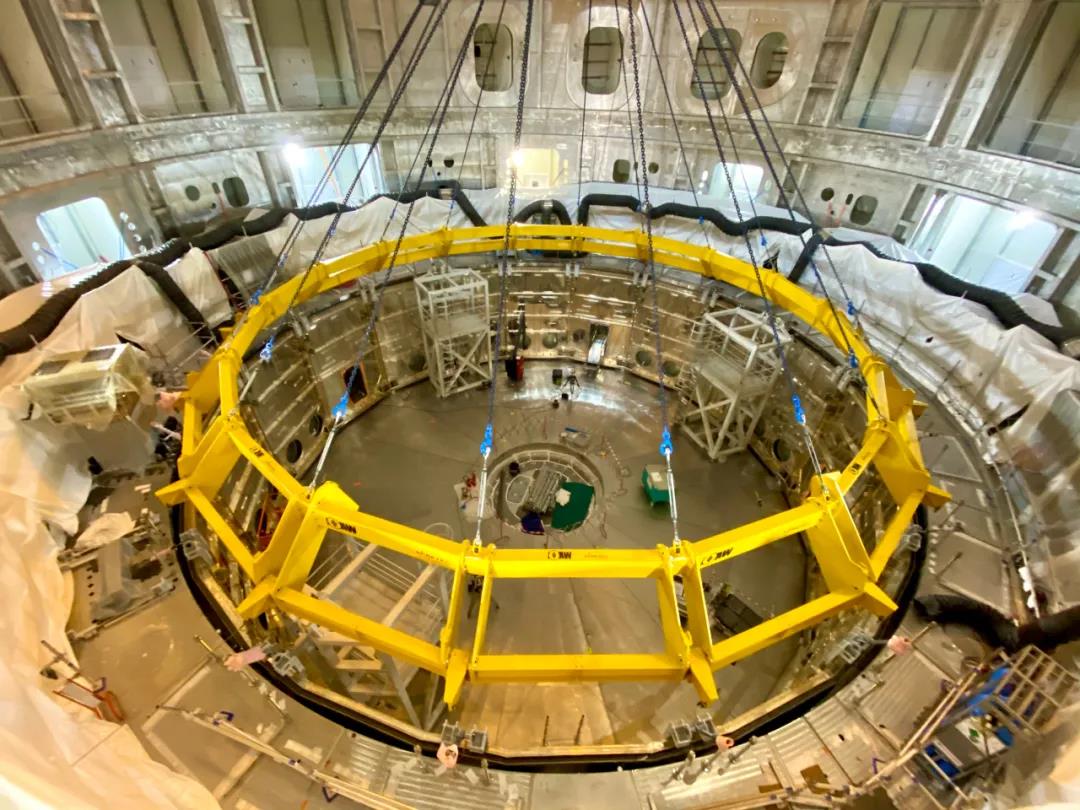 当地时间1月14日,在法国南部卡达拉舍,国际热核聚变实验堆(ITER)托卡马克装置第三个重大部件——杜瓦下部冷屏成功落位至杜瓦底座内侧上方,标志着吊装工作圆满完成。杜瓦下部冷屏吊装是ITER计划重大工程安装启动仪式后的第二个重大部件安装,也是中核集团中国核电工程有限公司牵头的中法联合体在法国完成的2021年第一个重大节点和重大安装任务,为ITER计划的顺利推进再次贡献中国智慧和中国力量,体现了中国恪守国际承诺的责任担当。
