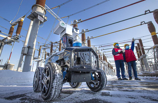 国网乌鲁木齐供电公司员工运用智能机器人巡检变电设备。