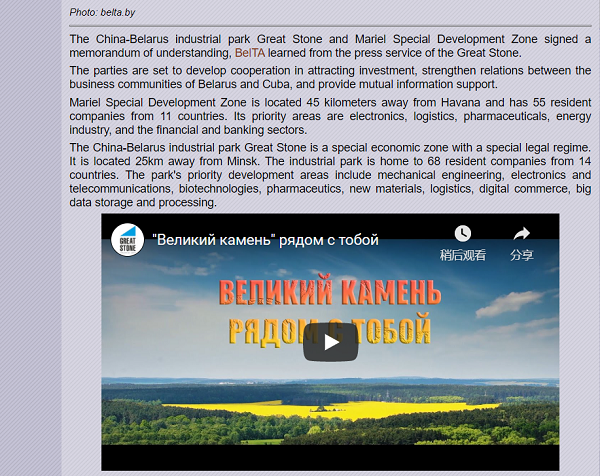 1月24日,白俄罗斯中白工业园项目举办云开放日活动。活动主题为“巨石在你身边”,通过线上视频形式带领观众领略入驻白俄罗斯“巨石”中白工业园众多企业的风采,展示了中国招商局集团、中联重科、潍柴、法士特等央企、国企勇于进取,扎根白俄罗斯中白工业园开展项目建设、推动高质量发展、履行社会责任的经营实践。活动由中国招商局集团举办,得到了国资委、白俄罗斯驻华大使馆和社会各界的大力支持。