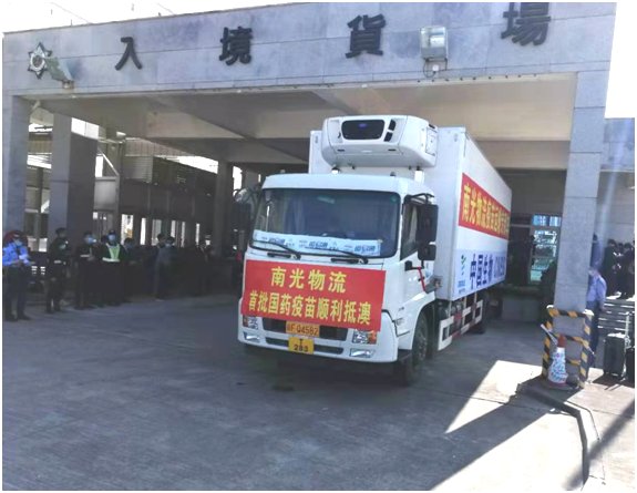 南光集团高度重视首批供澳疫苗工作,选派精兵强将,精心策划和组织实施采购、运输、押运、报关、跨境、装卸等环节工作,确保做到万无一失、按时交付。