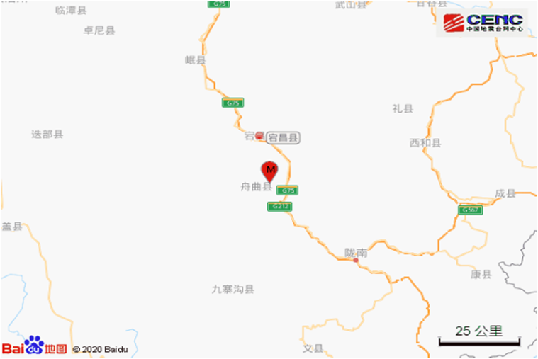 据中国地震台网正式测定,2020年12月28日20时46分,甘肃陇南市宕昌县发生3.9级地震,震源深度13km,震中位于北纬33.83º,东经104.45º。震中附近的陇南市宕昌县以及甘南藏族自治州舟曲县两县县城均有明显震感,而距离此次震中仅有10km的宕昌县职业中等专业学校实训楼顶层正在培训上课的师生们却普遍反映震感轻微、摆动不明显。