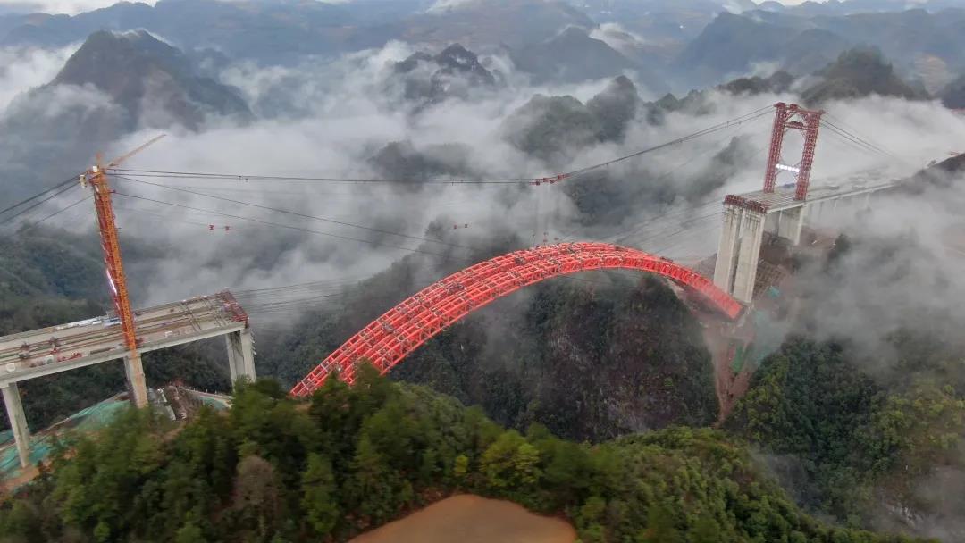 2月5日,由中交集团所属中交一公院设计、中交四公局承建的贵州贵阳至黄平高速公路乌梅河特大桥主拱顺利合龙,标志着贵黄高速的施工进度又向前推进了一大步,为贵黄高速今年六月底建成通车奠定了坚实基础。