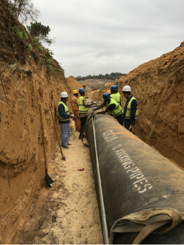 项目建设中,中铁二十局集团作为承包商,秉承强强联合、优势互补的原则,积极同新兴铸管开展合作。优质的产品结合规范的施工,双方在卡宾达以高度的默契感创建了供水领域的精品工程。卡宾达项目施工现场原始丛林密布,蚊虫肆虐,疟疾等疾病盛行,为提供更优质的产品技术服务,新兴铸管充分发挥央企综合实力,及时供货,满足施工需求,并配足配强技术力量,组织售后服务人员与中铁二十局集团现场施工人员并肩作战,全力确保了管线施工安全、优质和高效,共同把卡宾达供水系统工程建设成为惠民工程、民心工程、标杆工程。