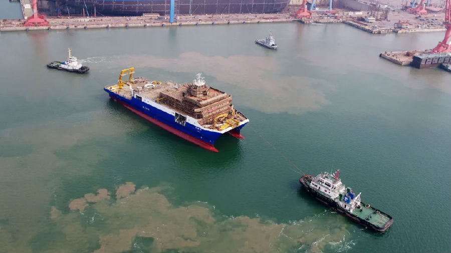 3月20日,由中国船舶集团旗下渤船集团建造的国际领先、国内完全自主研制的全钢质焊接结构小水线面双体深海装备综合试验船下水出坞。