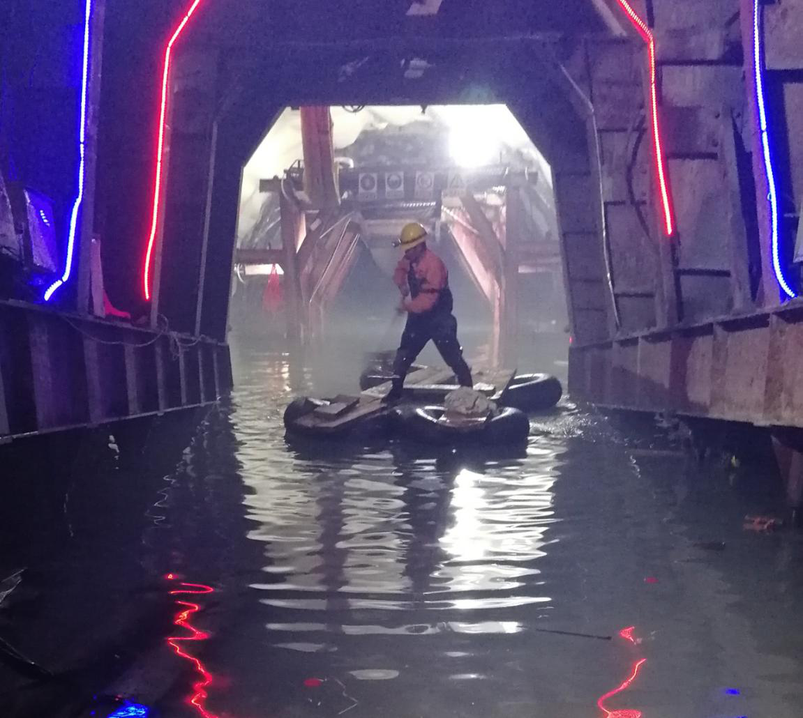 2020年3月13日,将军寨隧道掘进时,突发涌水,最高涌水面至一号斜井3号泵站,涌水高度达50米,最大涌水量可达6100m³/h,总涌水量281万方。险情发生后,项目部紧急组织人员和设备撤离,并立即成立突发涌水处理攻关小组,加强洞内抽排水,历经一个月,抽水工作圆满完成。