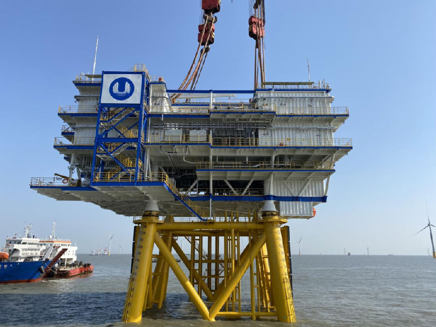 近日,三峡新能源江苏如东H10项目海上升压站吊装顺利结束。至此,三峡新能源江苏如东(H6、H10)海上风电项目的两座海上升压站海上安装工作全部完成,标志着三峡新能源江苏如东海上风电柔直项目又一“脉络”顺利打通,为实现2021年全容量并网发电奠定坚实基础。