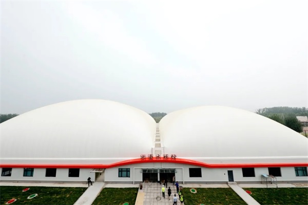 该项目也为北京市场馆建设提供了创新性范例——既往北京地区的气承式膜结构建筑,常用于工业仓储或室内体育场馆,均按临时建筑或设备设施标准进行设计;而该场馆项目创新性的将气承式膜结构应用于永久性建筑,设计过程中多次组织专家论证,是北京市首个按“永久性”建筑标准设计的气承式膜结构建筑。因此,该场馆建设标准更高,外围结构等基础工程设计使用年限均为50年,膜材的年限为30年,远高于其他同类型建筑,也为未来北京地区开展同类场馆建设提供了建设标准和过程借鉴。