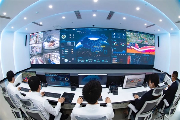 在全世界最大规模的盾构智慧管控中心,通过大数据及工业互联网技术为智能建造赋能,管控中心操作人员可以在千里之外对深在江底的“巨无霸”进行实时操控,实现了院士专家远程问诊精准化,施工联网监控信息化、施工安全预警实时化、监控数据集中化,能够高效率解决一线施工难题,降低潜在技术管理与作业风险。同时来自中国铁建旗下中铁十四局集团全国各地的大盾构施工项目的数据实时汇聚到指挥中心,通过数据可视化为大盾构研究院基础研发、科技攻关提供了海量的一线数据。