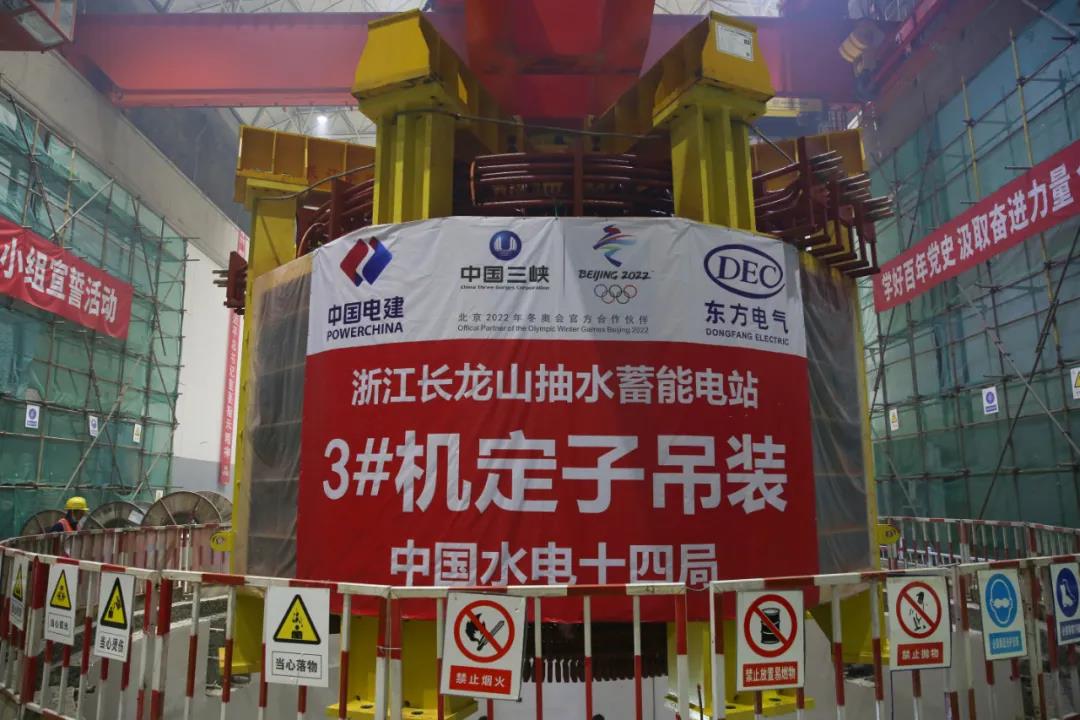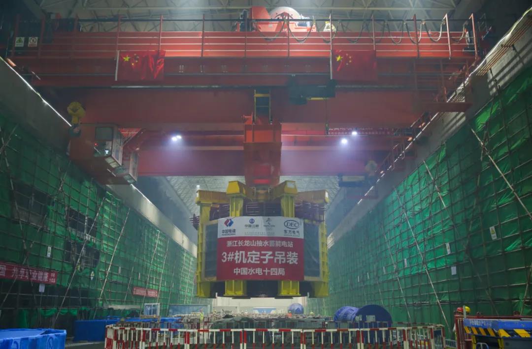 5月17日下午,三峡集团浙江长龙山抽水蓄能电站3号机组定子顺利吊装。至此,该工程6台机组已有3台完成定子吊装,标志着电站机组安装工作步入快车道。