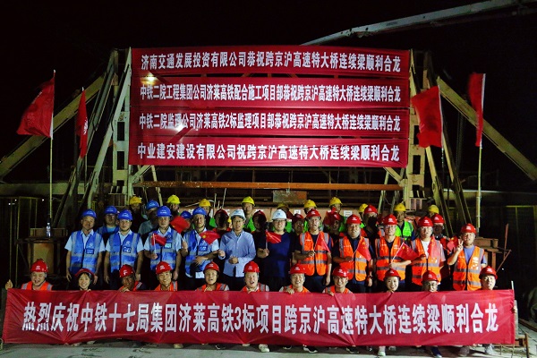 7月5日凌晨3时50分,随着最后一方连续梁中跨合拢段砼成功浇筑,由中铁十七局集团承建的济莱项目跨京沪高速特大桥连续梁顺利合龙,标志着项目重难点、控制性工程取得了新的突破,为项目运架梁和轨道工程施工奠定了坚实基础。