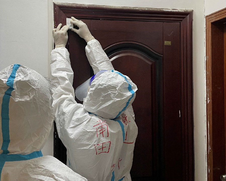 是的,不光是时间紧、任务重,更是风险大、难度高。19日上午,身穿厚重防护服的李一伟、张振彬,前往仙游县某中风险小区,挨家挨户为隔离人员安装。
