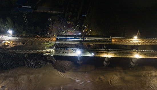 10月8日21时20分,经过中国铁建等单位50余小时的紧急抢修,受强降雨影响中断行车的南同蒲铁路上行线(北向)实现抢通。