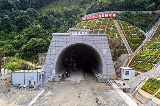 景寨隧道全长9.5公里,为时速160公里的单线隧道,也是全线最后一个攻克的“堡垒”。建成开通后火车仅需4分钟通过,中国铁建二十二局集团的建设者却在此坚守奋斗了1700多个日夜。