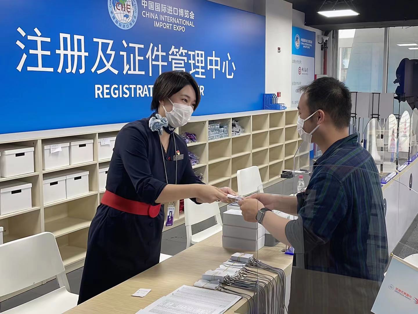在进博场馆服务方面,9月10日起,东航选派了三名经验丰富、业务精湛的员工入驻中国进口博览会注册管理中心,经过一系列的理论和实操培训考核后正式上岗开展志愿服务,为各参展商提供首问服务、证件咨询、补换证件等业务办理。