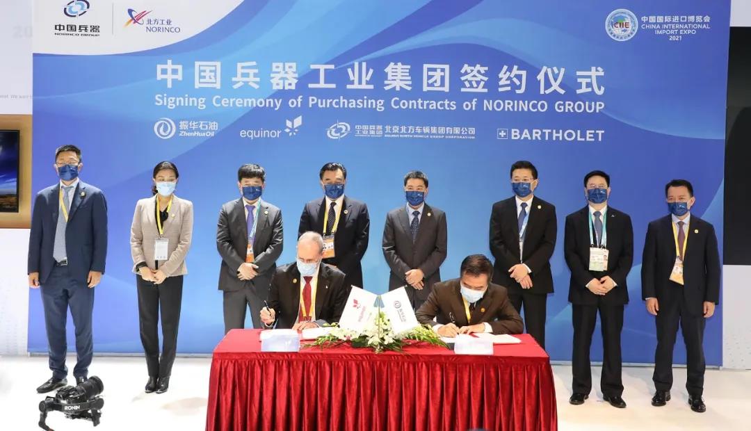 11月4日晚,第四届中国国际进口博览会在上海开幕。5日下午,兵器工业集团在展区现场开展进口签约活动,北方公司振华石油控股有限公司与挪威国家石油公司签署原油长期采购合作备忘录,并围绕碳减排技术及排放配额交易等议题展开交流,为履行2030年前实现“碳达峰”、2060年前力争实现“碳中和”目标贡献力量。北京北方车辆集团有限公司与瑞士巴特莱集团签署索道装备采购合同,进一步拓展双方长期友好合作的深度和广度。