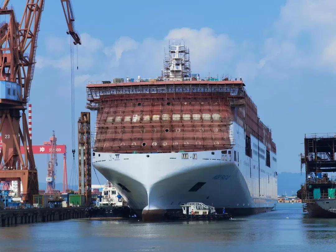 近日,中国船舶集团旗下广船国际为意大利Onorato航运集团旗下Moby Line航运公司建造的2500客/3800米车道豪华客滚船首制船实现出坞,建成交付后,将成为全球最大的豪华客滚船。