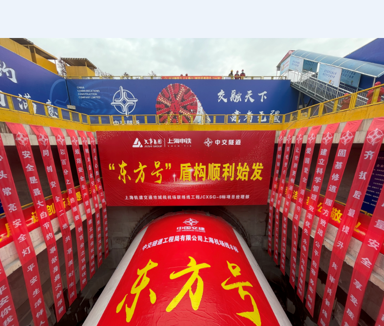 近日,我国自主研发的“东方号”超大直径泥水平衡盾构机在中交集团所属中交一公局集团隧道局承建的上海轨道交通市域线机场联络线第8标段项目始发。