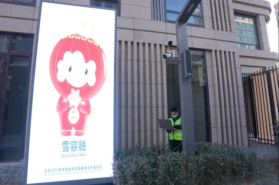 在“明”处,智慧灯杆上的电子屏、单元门内的高清显示器在实时收集并记录当日气象数据的同时,不间断播放冬奥会宣传片,配合灯杆上的冬奥会主题彩旗,以及随处可见的冬奥会吉祥物的可爱形象,为冬奥村营造极具中国文化特色的氛围。冬奥村里悬挂了很多红灯笼,显示器上的吉祥物也换上了新春红装,各国运动员入住后,可感受到传统“中国年”的魅力。