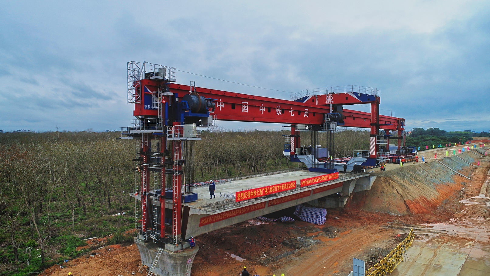 2月22日,中国中铁旗下中铁工业中铁科工机械院研制的千吨级运架装备“陆吾号”在中铁七局承建的广湛高铁八标项目成功实现首架。