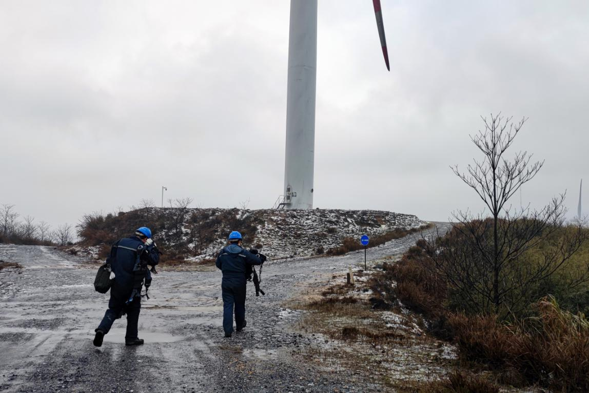 云南新能源4个场站8个风电场全部进入低温凌冻紧急状态,面对1米多深的道路积雪,坚守现场的风电人坚持徒步对每台风机和箱变开展安全检查,对故障风机及时进行故障处理。