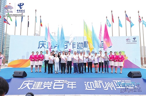 2021年6月29日,中国电信浙江公司在杭州举行了“庆建党百年,迎杭州亚运,迈步新征程,毅行钱塘江”暨杭州亚运会赞助商俱乐部第四届轮值主席活动,世界冠军、杭州亚运会官方合作伙伴代表、赞助企业代表及杭州亚组委各部代表等百余人参加,向外传递亚运大家庭的天然优势,展现中国企业和中国品牌的风采。