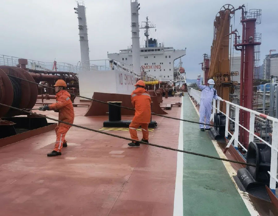 近期,宇华海轮申请在连云港一次性加注5200吨同一批次保税燃料油。中国船燃连云港公司密切关注船舶进港计划,全力统筹资源抵达时间,并在全程采取无接触供油模式,比预计时间节省4个小时,为宇华海轮顺利开航提供了充足的动力保障。