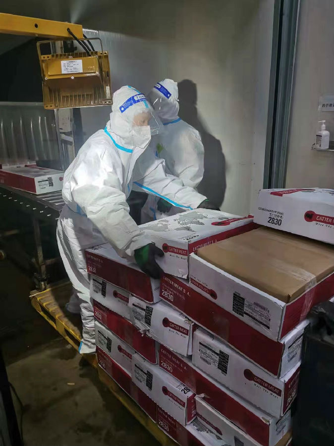 宁波中远海运冷链供应链银冷仓库作为上海市民生物资“第一存放点”中转查验冷库,负责对从上海口岸直接进入上海市存储、生产、销售的进口冷链食品实施中转查验预防性消毒、核酸检测和配送,关系着上海市民的菜篮子。