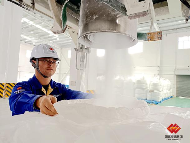 图为国家能源集团榆林化工公司员工在打包氯化钠产品