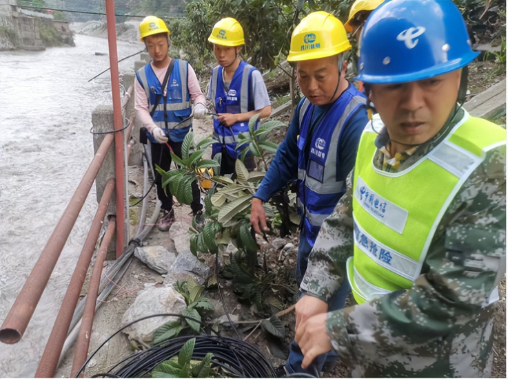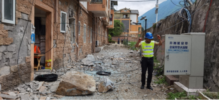 地震发生后,中国电信四川公司快速启动应急保障预案,第一时间组织抢险队伍奔赴一线。当晚,通信应急保障队伍就位市、县、乡镇三级指挥部现场,恢复抢修和保障工作随即开始,并在应急集中安置点组织志愿者队伍,搭建便民服务点,提供帐篷座椅、免费充电、饮用水等便民服务。