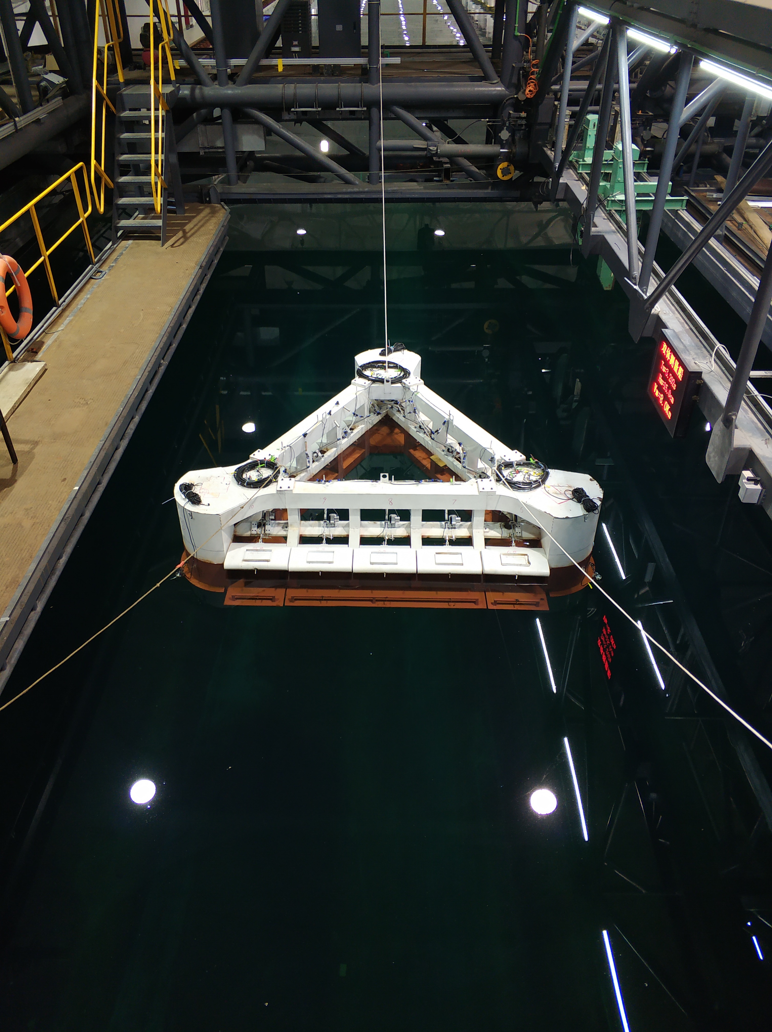 研发阶段,项目团队开展兆瓦级波浪能发电平台水动力学性能模型试验。