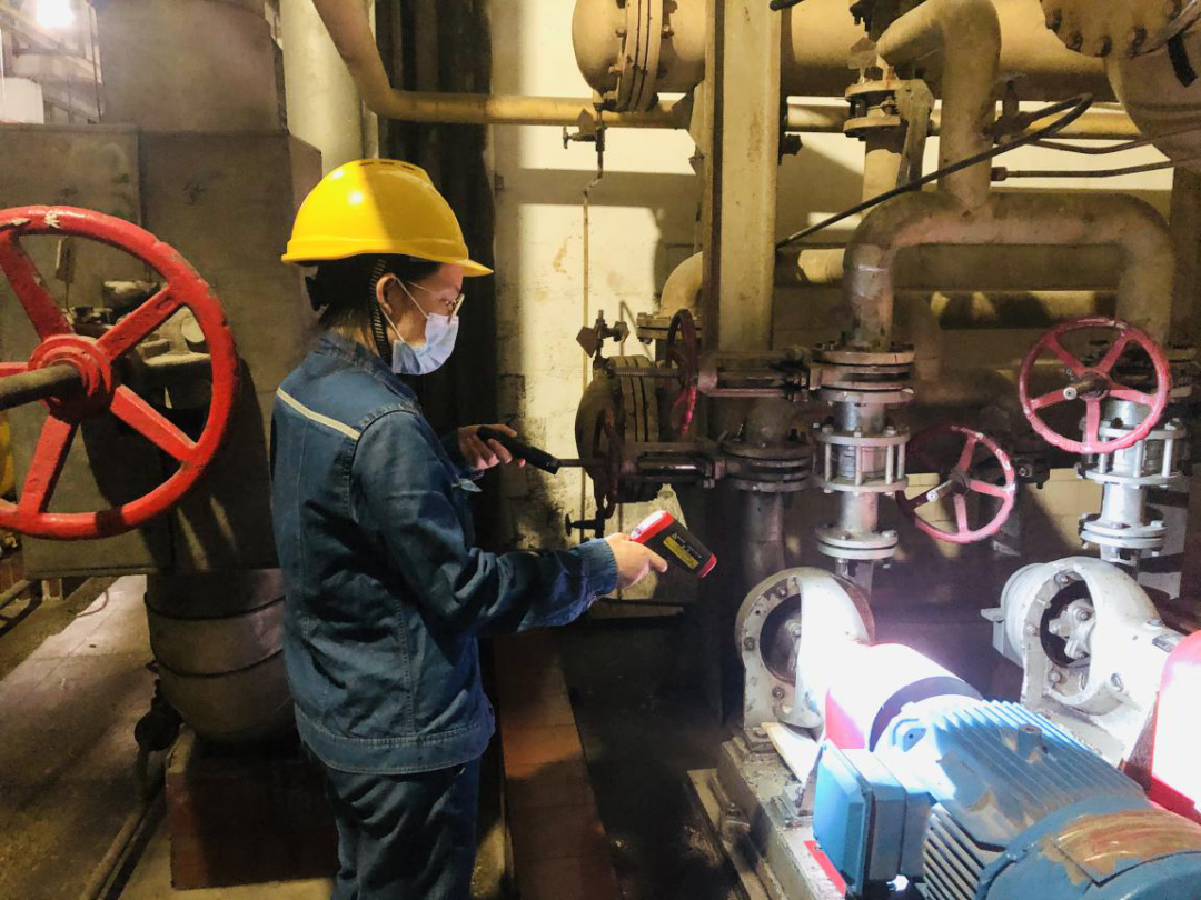 湖北能源鄂州发电公司工作人员在厂内巡检。