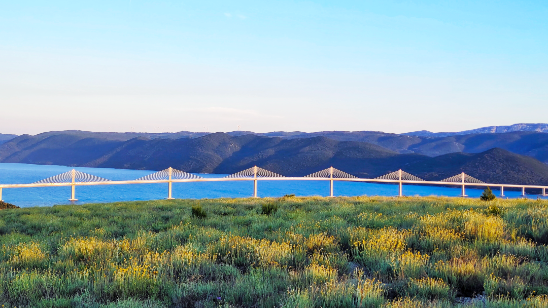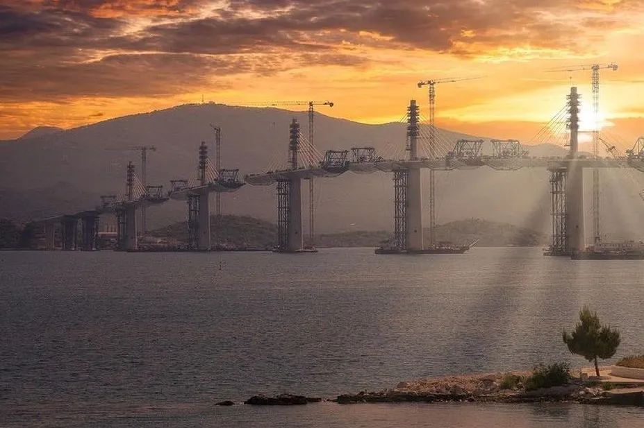 佩列沙茨大桥为6塔中央单索面矮塔斜拉桥,采用双向四车道,设计时速80公里,是连接克罗地亚南北领土的唯一通道,也是由中企承建、欧盟基金出资的克罗地亚最大基础设施项目。