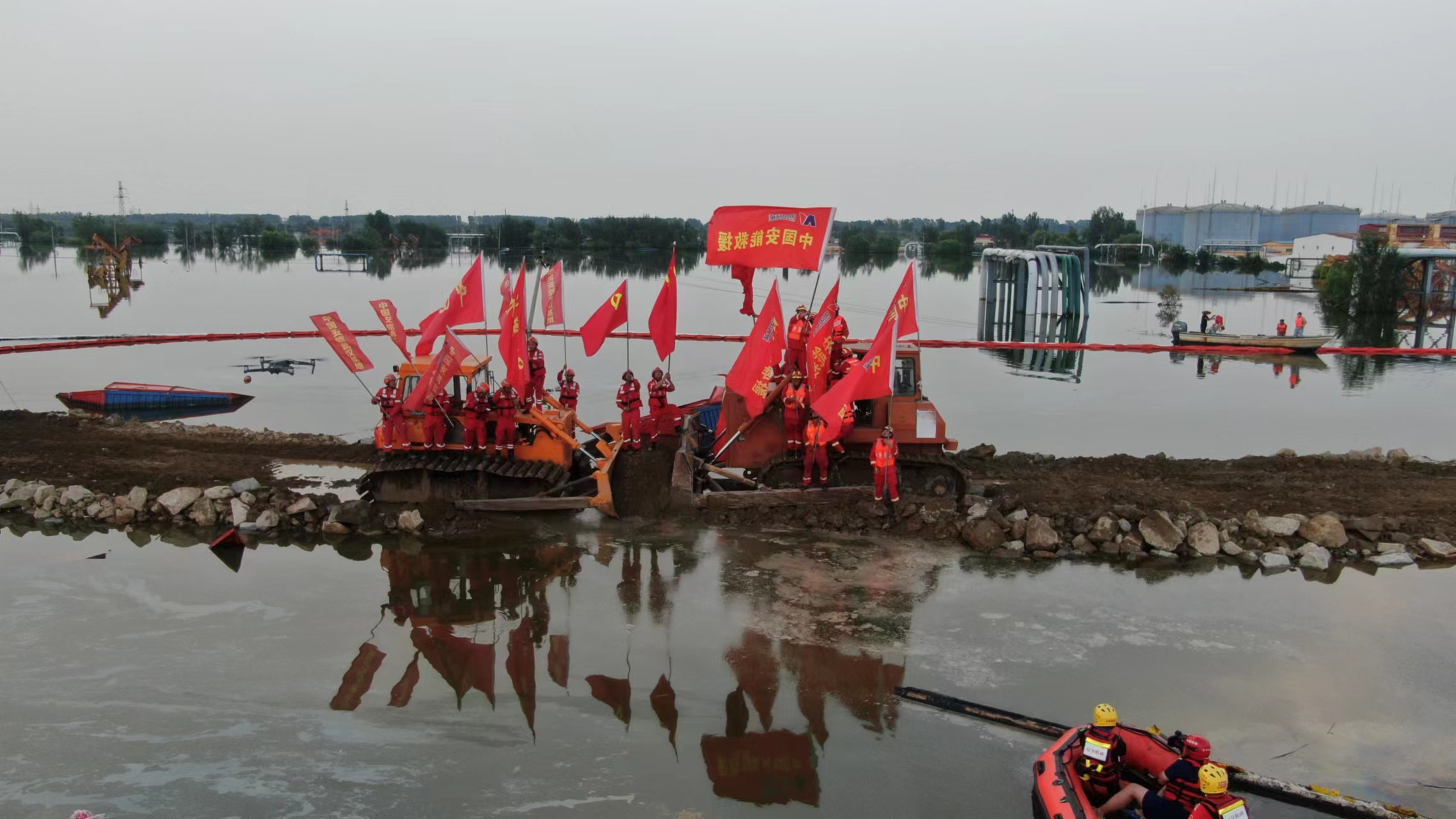 受7月7日、7月28日受两轮强降雨影响,辽宁省盘锦市绕阳河发生有水文记录以来最大洪水,8月1日6时,绕阳河左岸曙四联段一处堤坝出现严重透水导致溃口,宽度一度扩展到50米左右。接应急管理部调度指令后,中国安能集团第一时间启动应急响应机制,分别从北京、唐山、武汉、成都等地调集专业救援力量250余人,280余台套装备(地方政府保障装备161台套),执行堤防溃口封堵任务。