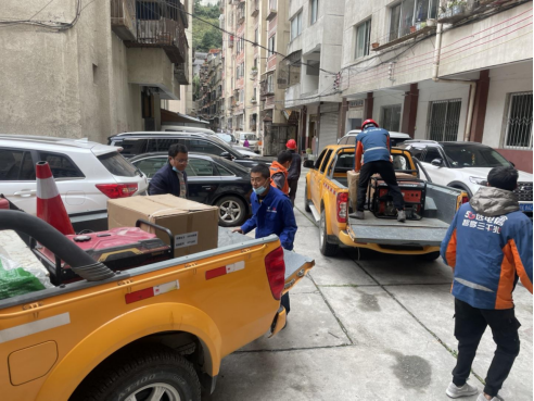 中国电信准备发电机等抢险物资,装车出发前往泸定磨西抢险
