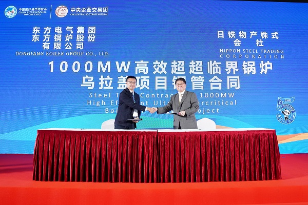 东方电气集团东方锅炉股份有限公司与日鉄物産株式会社签订1000MW高效超超临界锅炉乌拉盖项目钢管采购合同。双方将共同打造稳定供应链,实现项目高效履约。