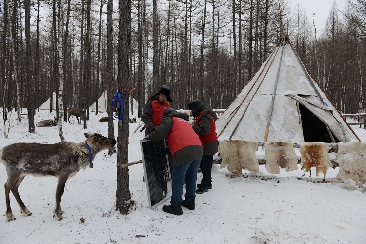 大兴安岭的冬季,远山覆盖着白雪,天空仍飘落着零星的雪花。山风飒飒地吹着,白云缓缓地飘着,鹿角在白雪皑皑的森林中时隐时现,悦耳的鹿铃在远远近近的时空里叮叮当当响个不停,一群驯鹿尽情地奔跑在森林中,远处撮罗子里升起袅袅的炊烟,国网根河市供电公司共产党员服务队一行来到了布冬霞驯鹿放养点,到达目的地后,他们立即操作起来,对光伏发电板进行耐心细致检查并接通电路,高高悬挂的红灯笼在皑皑白雪中显得格外吉祥。